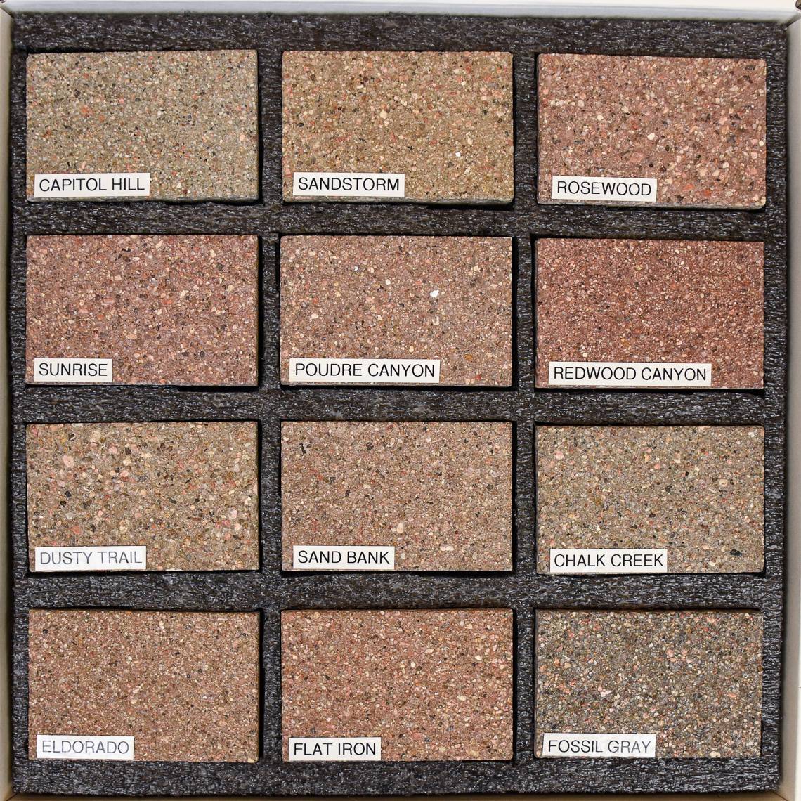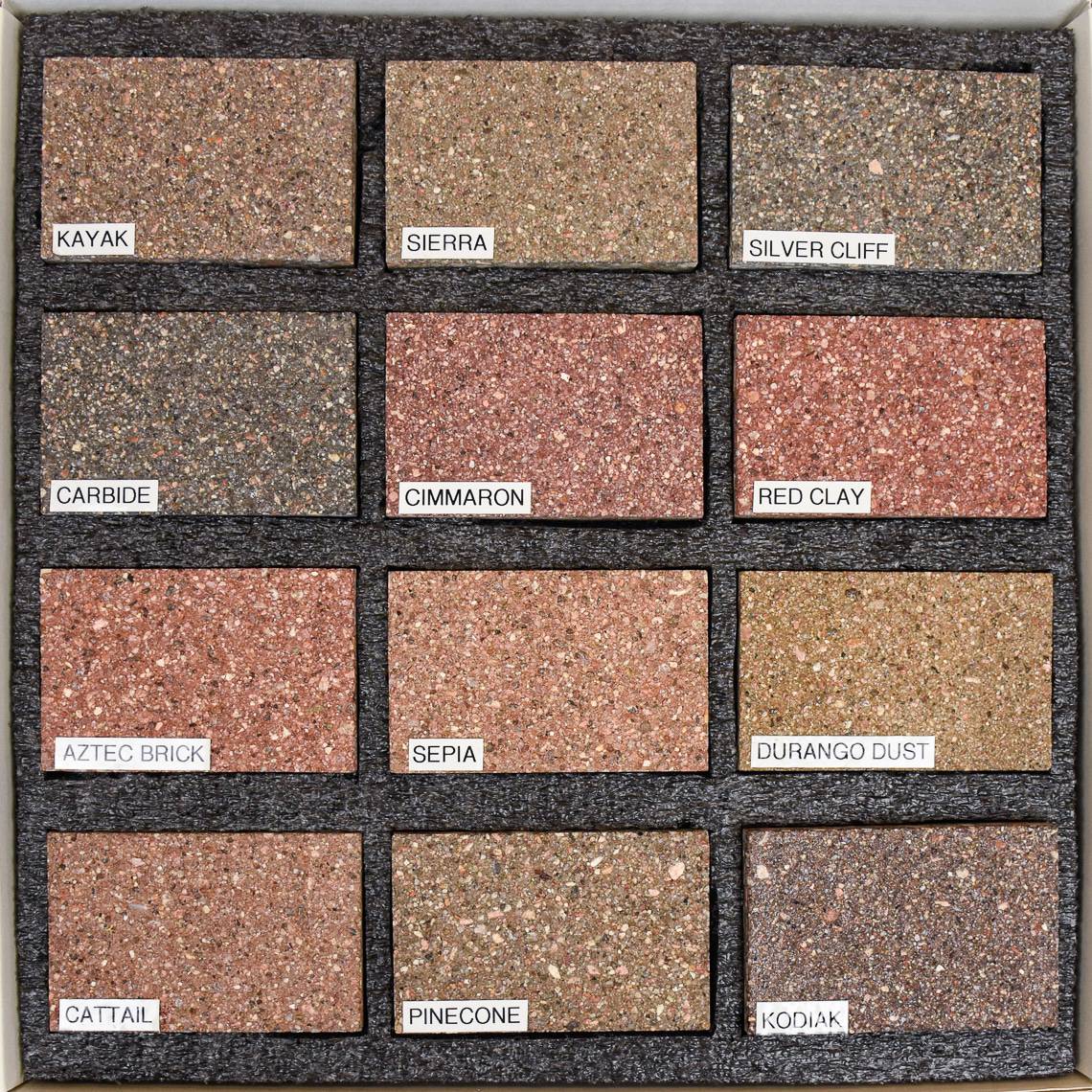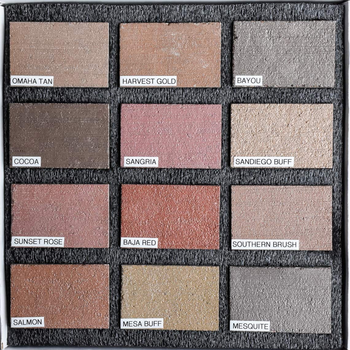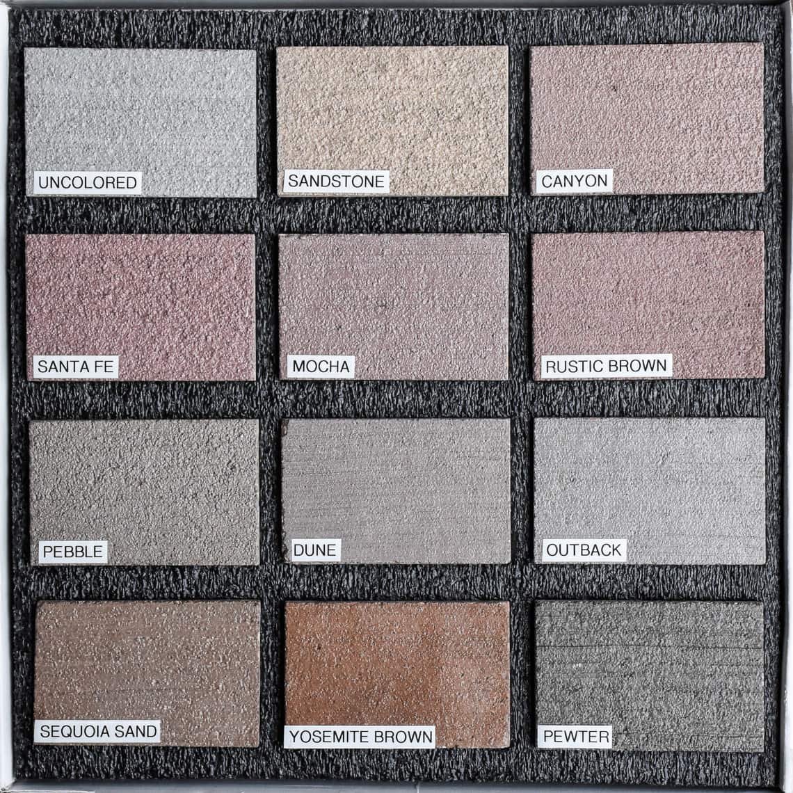 Both our Broom Finish and Sandscape Sample Boxes have three different color palettes; Subtle, Standard and Premium. As you can imagine the amount of color added to the concrete mix increases in the standard and premium boxes and this may increase the price. These boxes show several of our color options but not all. We would love to show you more options in our Showroom.