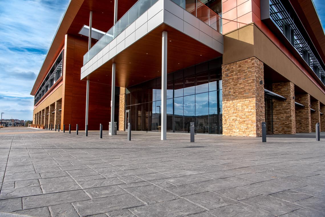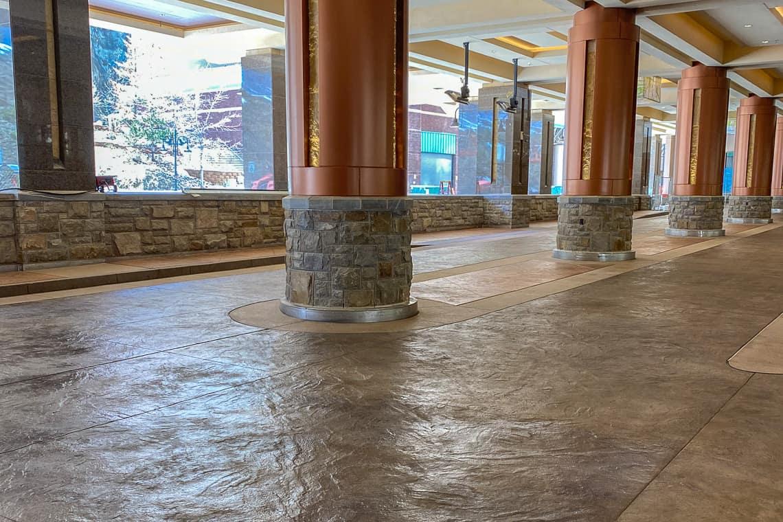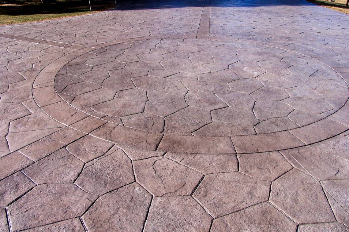 A mat or stamp pressed into the top of concrete to incorporate a pattern into its finish.
