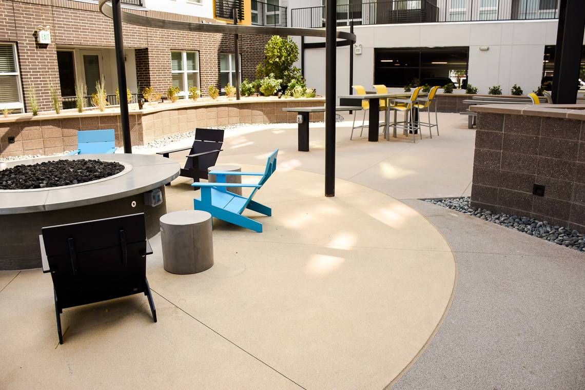 Provides the same texture and benefits as Sandscape but used for three specific reasons; 1. To achieve colors you cannot get out of the standard integral color palettes. 2. To change the natural color of sand away from the Colorado pinks we have locally to greys or other colors. 3. to add additional items like jelly bean glass or crushed mirror glass to add reflection and sparkle.